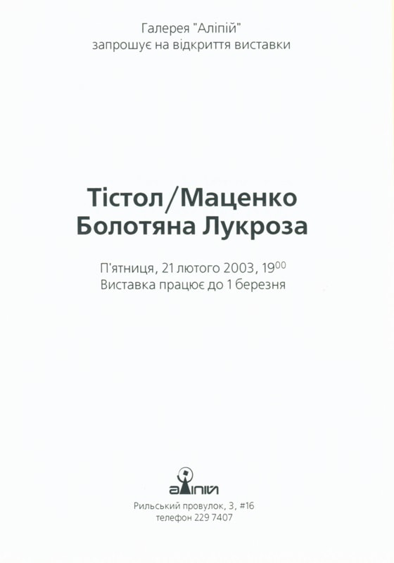 - Вступна стаття Марти Кузьми до каталогу «Алхімічна капітуляція»/ Брошура виставки «Алфімічна капітуляція». – 1994 р.