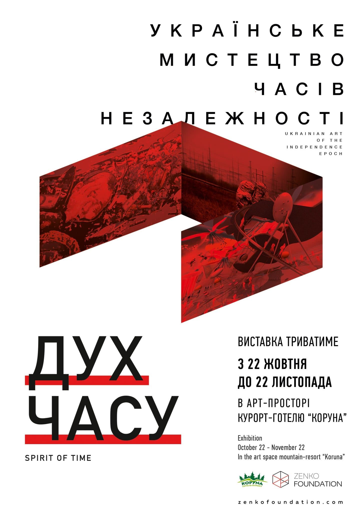 22 октября в арт-пространстве Zenko Foundation, расположенном на территории гостиничного комплекса «Коруна» (Татаров, Ивано-Франковская обл.) откроется выставка «Дух времени». Экспозиция продлится до 22 ноября.