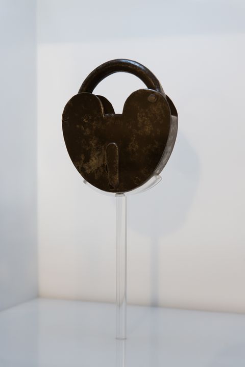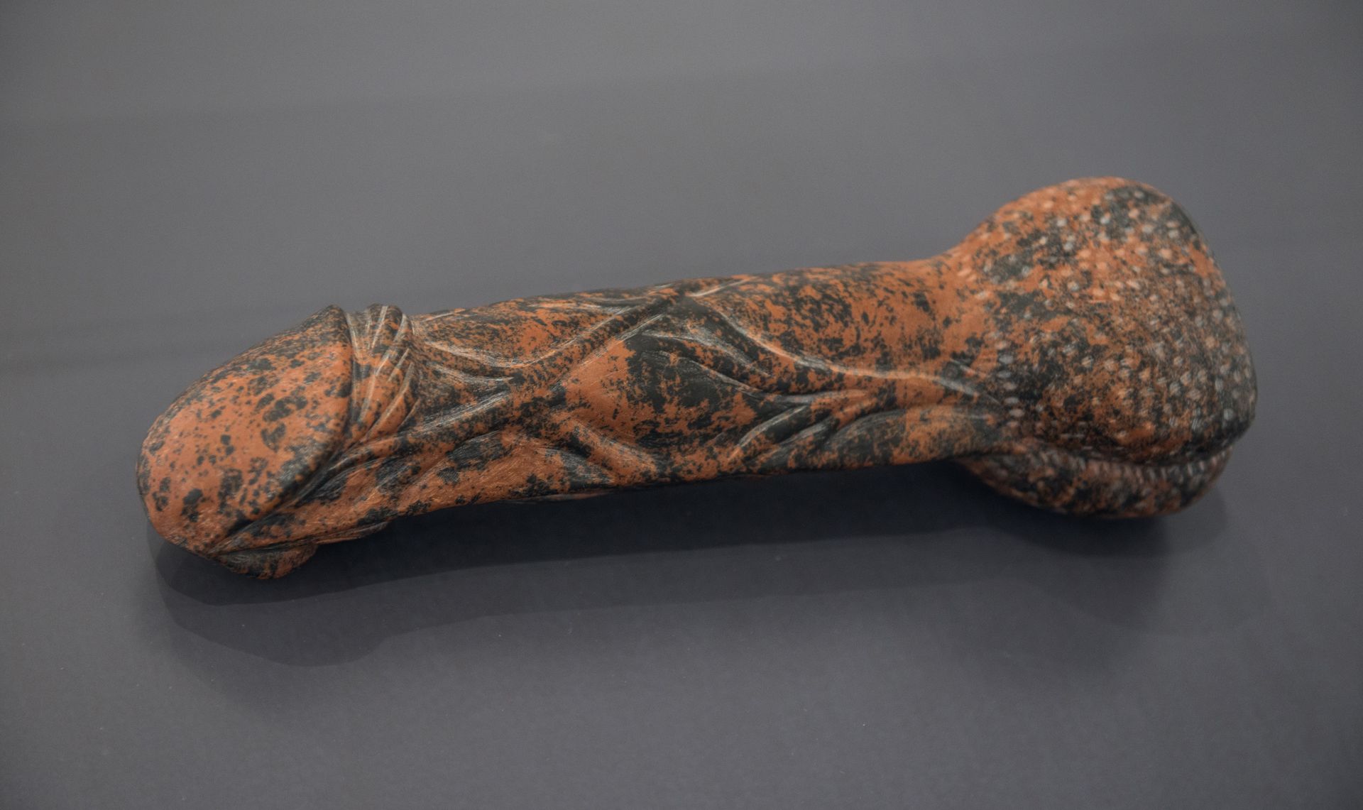 Пеніс, вирізьблений вручну на обсидіановому камені, скляна вітрина