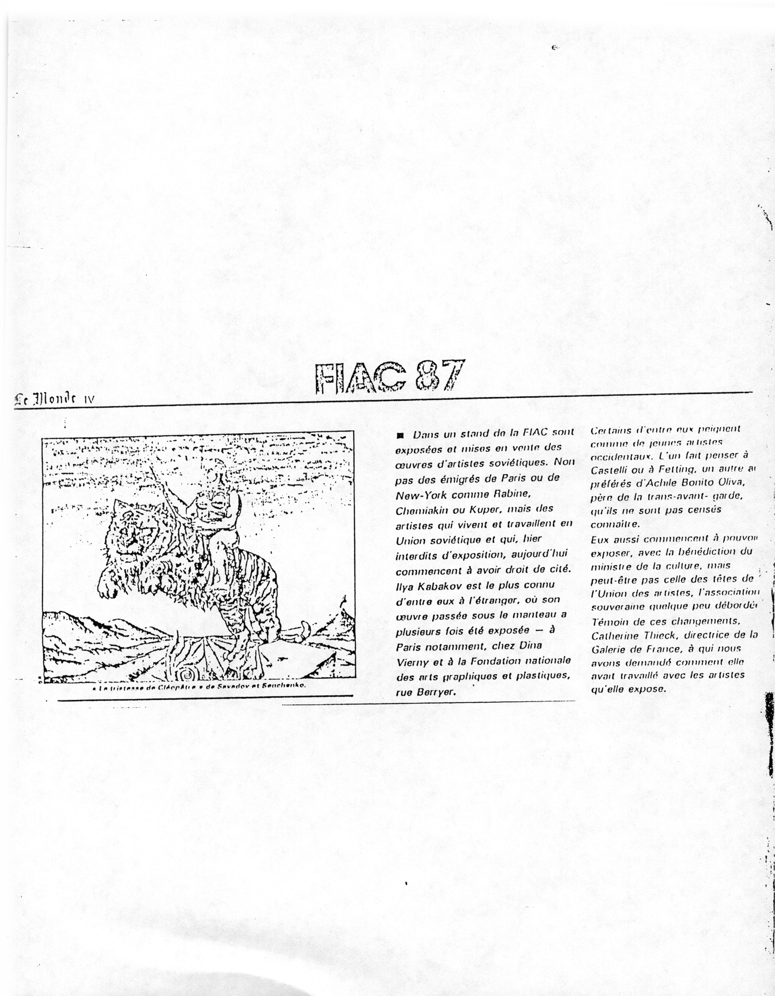FIAC 87// Le Monde – IV – 1987