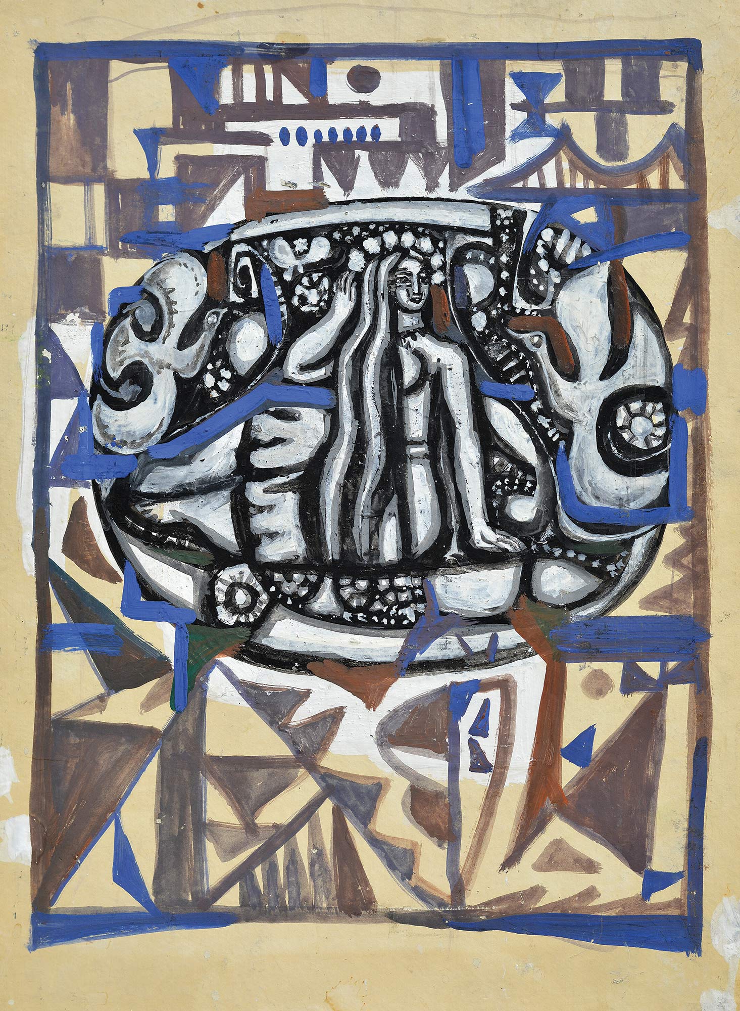 Федір Тетянич, 1970-і, Ескіз до монументальної роботи «Дівчина з птахами», картон, змішана техніка, 50 × 35 см