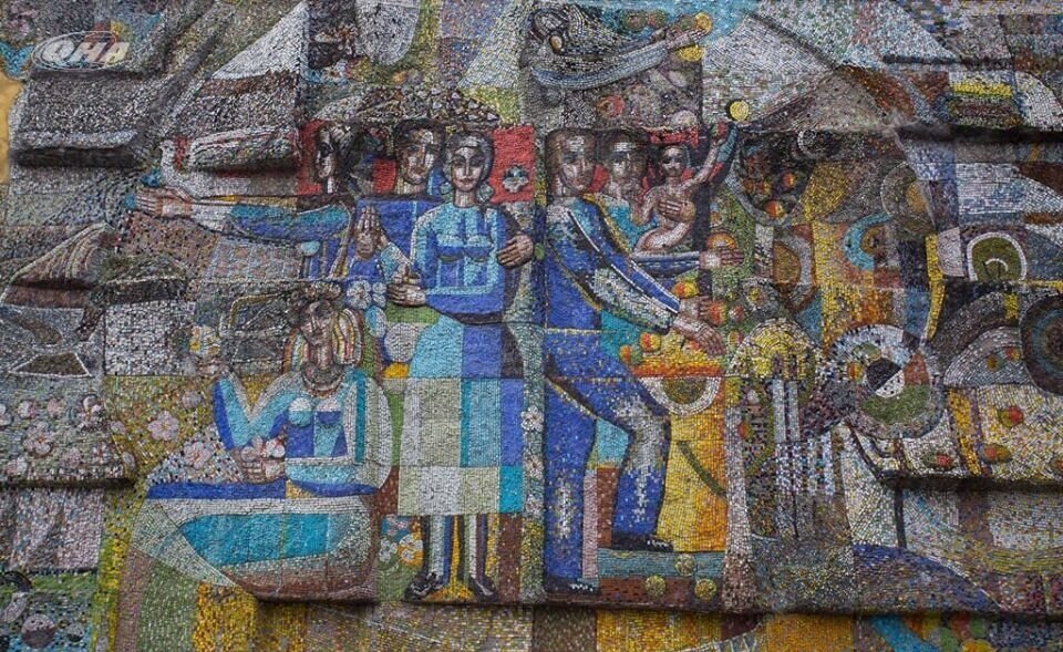 Федір Тетянич. Україна молода. 1976. Монументальне оформлення фасаду будинку, Дарницький бульвар 23, мозаїка