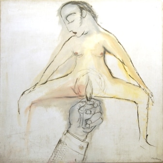 Майже всю площину полотна займає умовне зображення жінки із розставленими ногами, де замість вагіни — вогонь від запальнички, яку тримає чоловіча рука. Художник зізнався, що до цього образу його штовхнула життєва подія, пов’язана з розлученням з дівчиною.