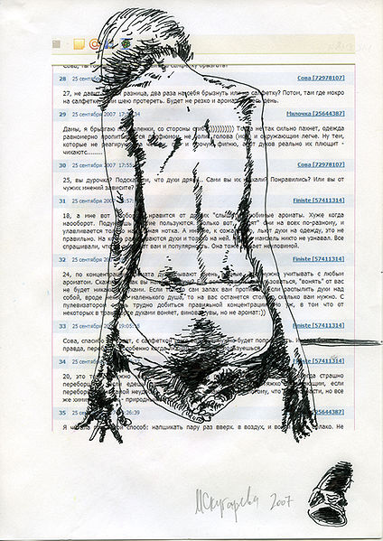 Марина Скугарєва. З серії «Добрі домогосподарки». 2009. Папір, гелева ручка. 30 × 20 см