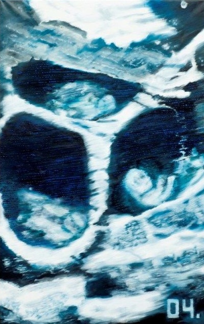 Оксана Чепелик. 2D. Трійня. Із серії «Сонографія, або Життя до народження». 2009. Полотно, олія. 207 × 133 см
