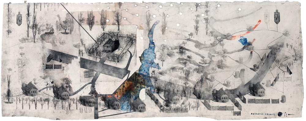Павло Маков. Paradiso Perduto. Група творів. 2012—2014. Малюнок, багаторазове інтагліо, акрил, папір. Розміри різні: 63 × 161 см ; 71 × 52 см; 87,5 × 65 см; 286 × 341 см.