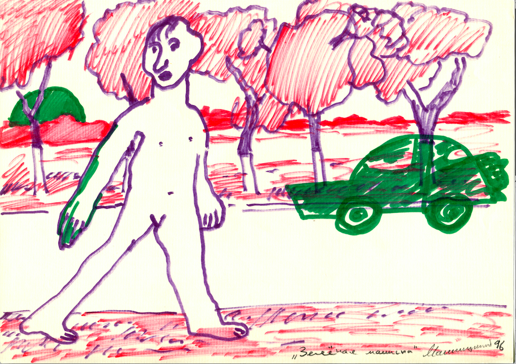 Робота із серії «Альбомні замальовки», що є путівними начерками у мандрівному альбомі, який художник наповнював неструктурованими і непослідовним замальовками побуту. Переїхавши до Москви, художник майже рік створював ситуативні начерки в умовах зміни місця проживання, які були сублімацією процесу асиміляції в іншій країні.