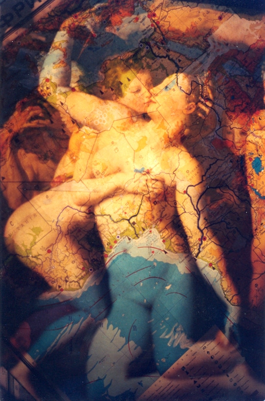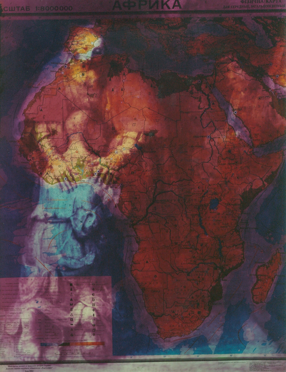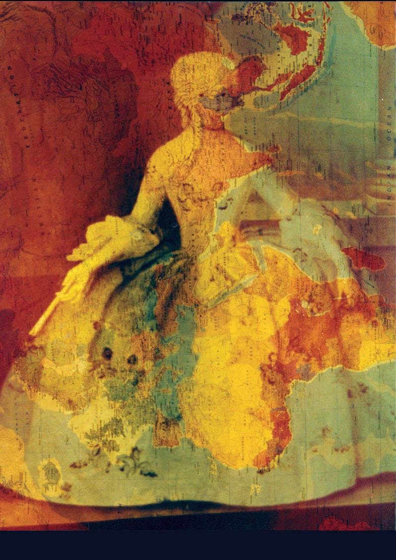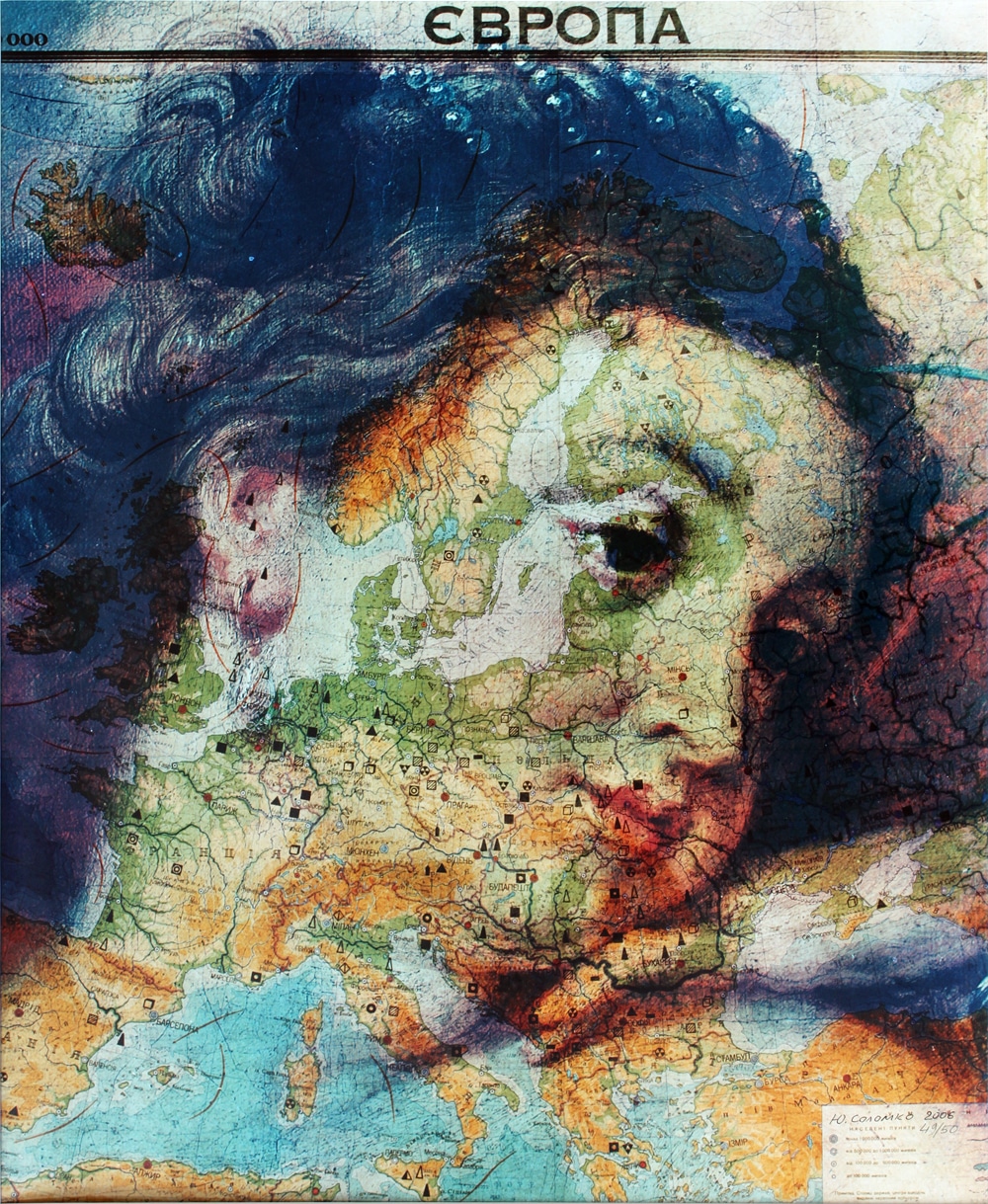 Юрій Соломко трансформував винайдений ним творчий метод живописних проекцій на карти у сферу медіа-мистецтва і взявся експериментувати з фотографією. Роботи він створював шляхом накладання одне на одного двох знімків — людського тіла і географічної карти. Залишаючись відданим символам і знакам географічних карт та образам з історії мистецтва, художник виконав нову серію фотографій, де герої з історії мистецтва вдало вписуються в поверхню континентів, образи яких повторюють обриси землі й океанів. В даній роботі художник запозичує відомий твір Рембрандта «Флора».